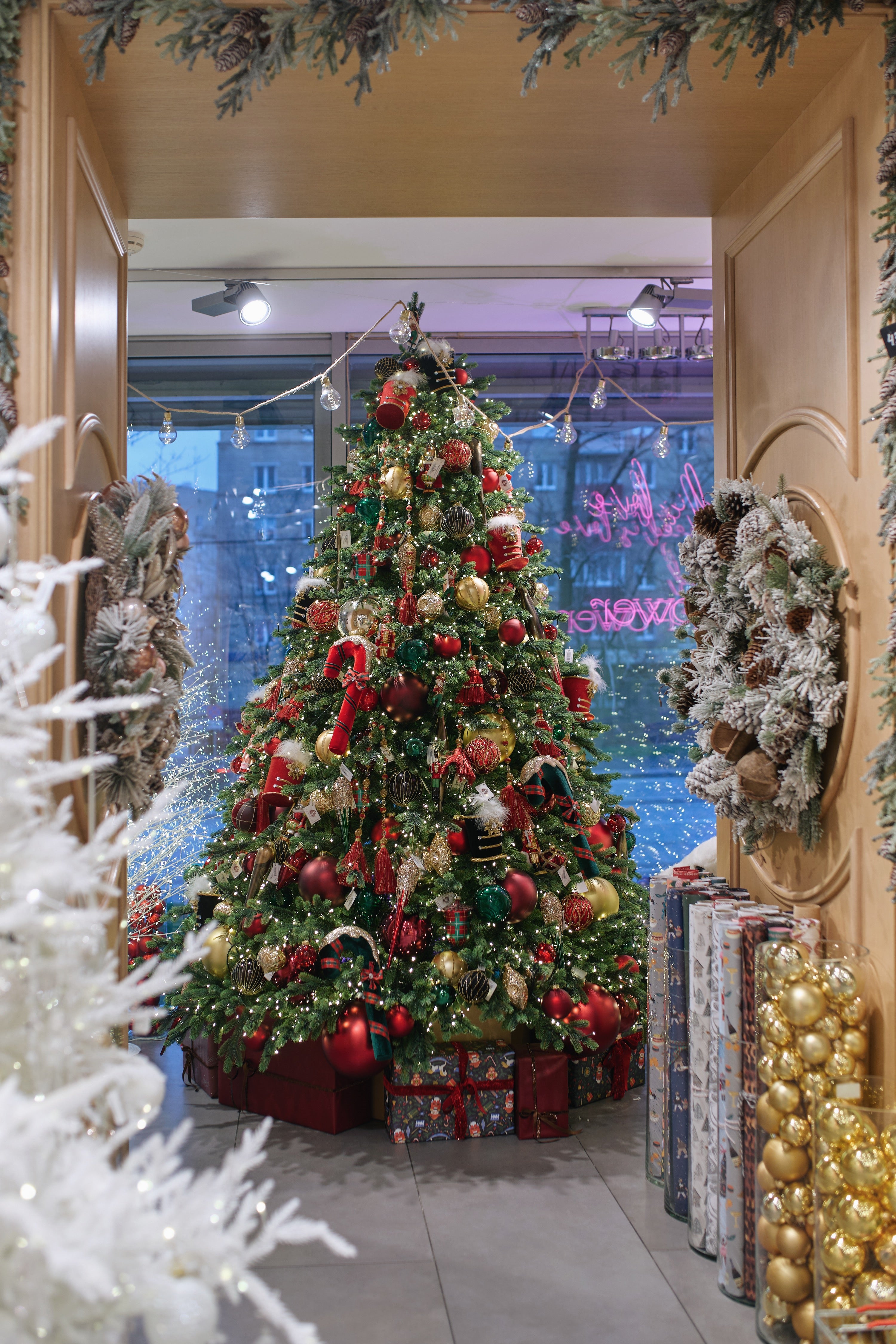 Концепции праздничного декора, включающие рождественские елки, оформление столов, цветочные композиции и венки, созданы для изысканной сезонной атмосферы.