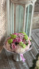 Любой букет среднего размера доставляется в нашей фирменной транспортной коробке, упакованной в аквапак.